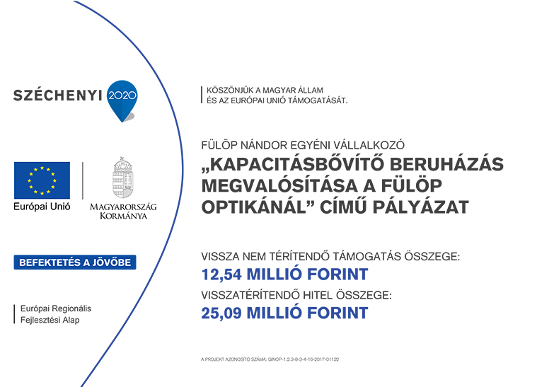 Jelen projekt keretében egy darab Nidek LEX 1212 csiszolórendszert, két darab Nidek LM-610 dioptriamérőt és egy darab NIDEK Szemüveglencse csiszolórendszert szereztünk be, melyekkel 32.50 – Orvosi eszköz gyártása tevékenységünk jelentős kapacitásnövekedésen ment keresztül. A fejlesztéssel hatékonyabbak, versenyképesebbek vagyunk és a minőség is javulást mutat.